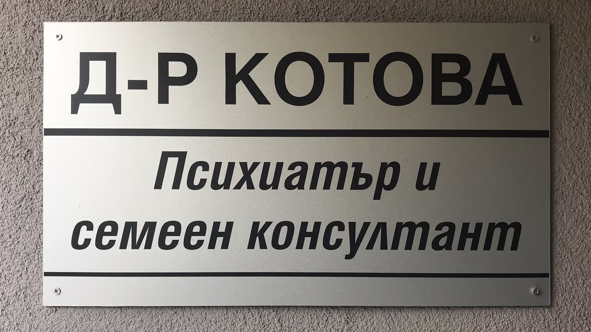 Елегантна табела от еталбонд (матиран алуминий), която създава усещане за престиж и доверие. Подходяща за лекарски кабинети, адвокатски кантори и консултантски фирми.