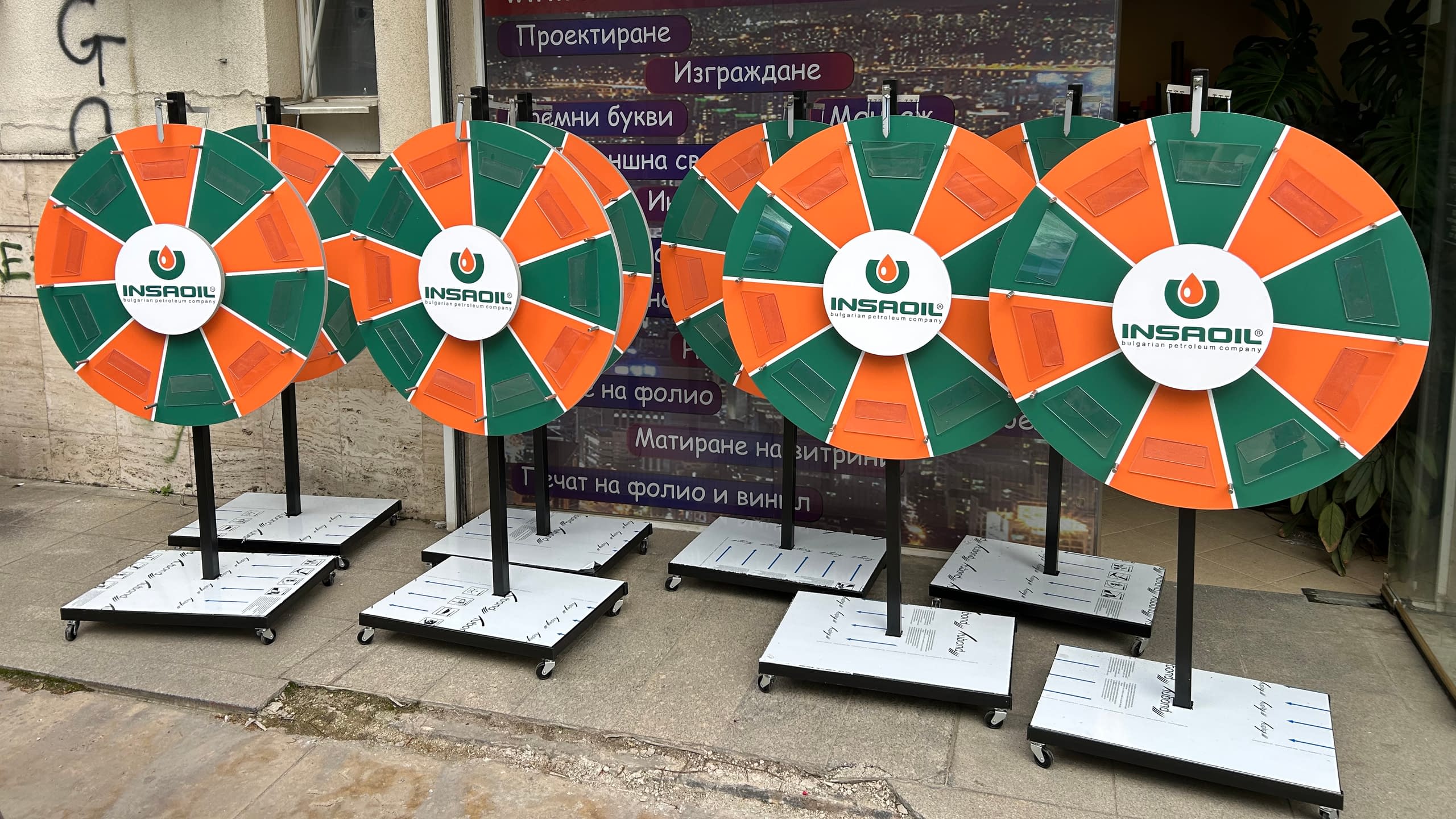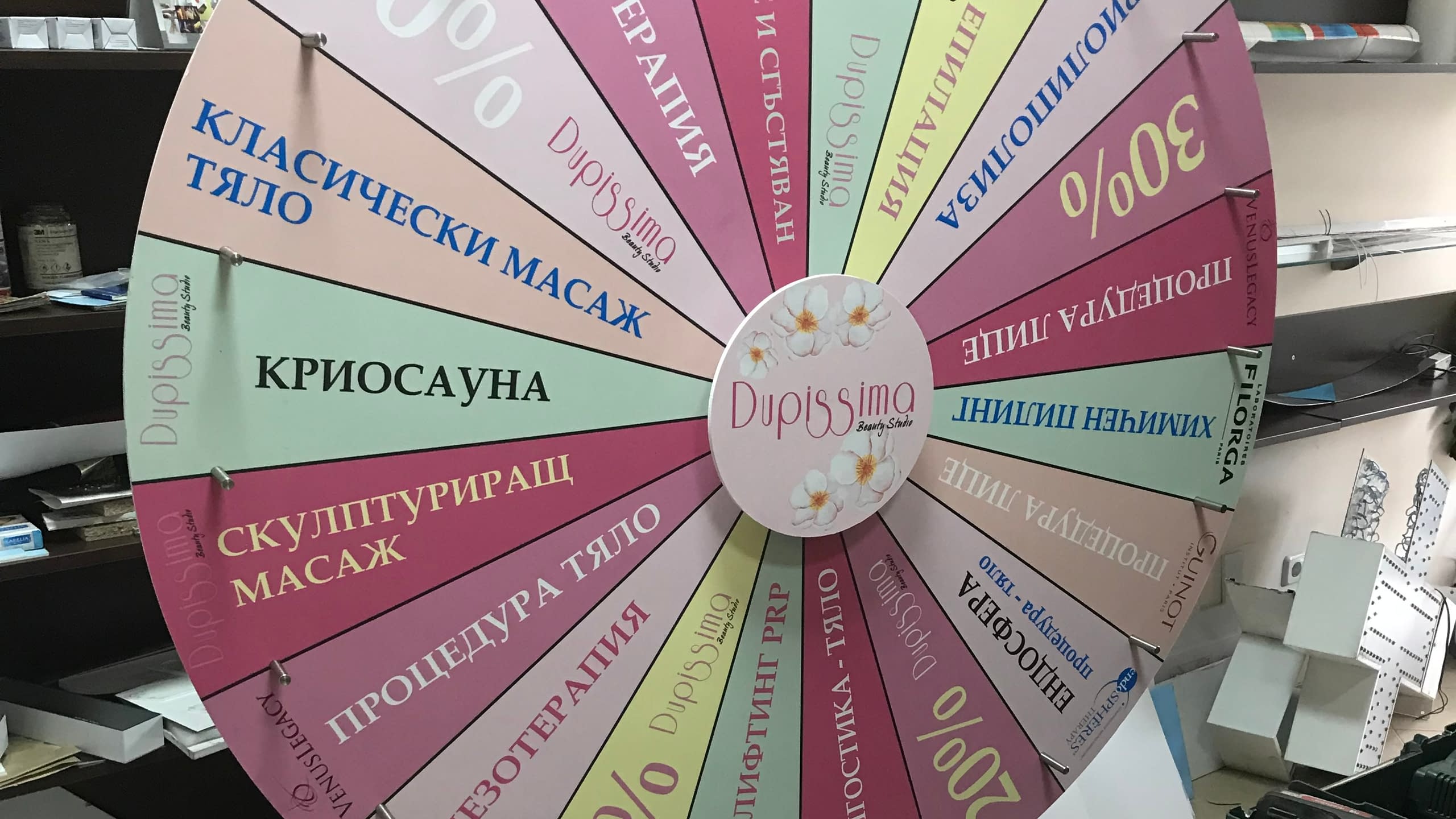 Ние сме фирма, която се занимава с изработване на колело на късмета с разиграване на награди. Колелото на късмета може да бъде няколко основни вида: