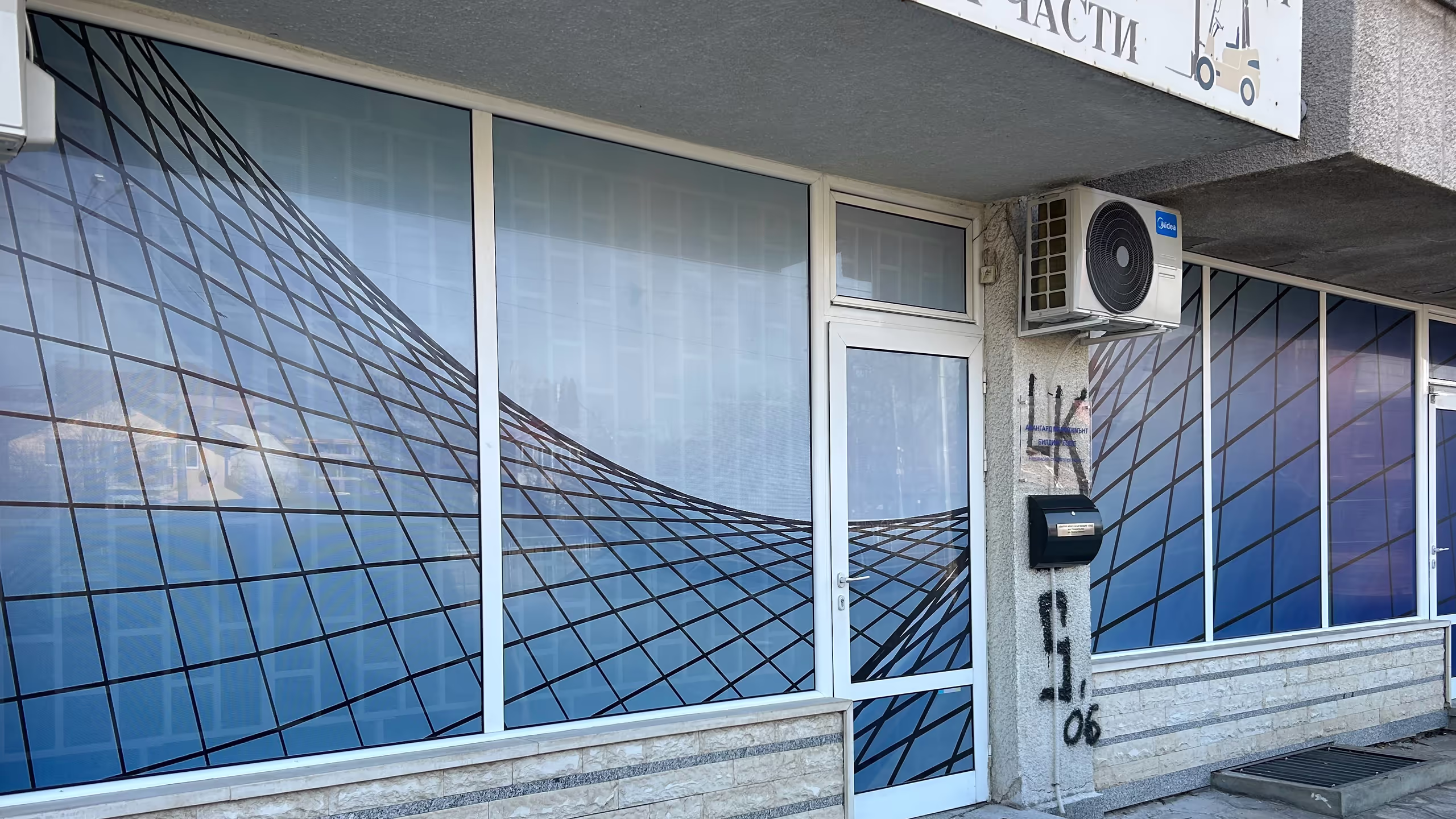 - Слънцезащита: Освен рекламен носител, фолиото действа като ефективен екран. То спира агресивните UV лъчи, предпазва интериора (и стоката) от избледняване и видимо намалява жегата в помещението през летните месеци.