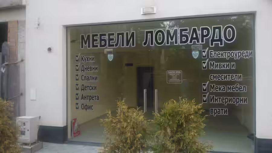Наш клиент отвори нов магазин за мебели – дизайнерско изпълнение и обзавеждане по поръчка. Желанието му бе да рекламира дейността си по най-добрия начин. Изборът падна на надписи от рязано фолио по контур, тъй като ефектната и стилна рекламна стратегия твърдe често трябва да бъде изпълнена семпло, без да се натрапва с дразнещи послания. Затова името на фирмата и текстът за дейността са изпълнени със строги, но стилни цветове фолио, подредени така, че да създават добра видимост на изложените продукти и мостри по витрината. На такъв замисъл подхождат надписи с изчистен шрифт, без ефекти, лесно четим и с ясни послания. Ефектът идва от симетрично разположените, добре подбрани като големина и цвят букви с класически вид, защото стилът се създава от класиката. За да се осъществи едно такова рекламно виждане, важен е подборът на цвета фолио за надписите. Класическо черно, обкантено с бяло е отличен избор, за да се създаде обем на надписа и той да изпъкне на стъклото. Този цветови избор е подходящ, ако фирмата няма свои запазени фирмени цветове, които да я правят разпознаваема. За стилната реклама е важно и изпълнението. Изрязаните по контур надписи гарантират прецизността, която е задължително условие. Отпечатаните с висока резолюция на печатане текстове пък са ясни и отчетливи, с дълготрайна експлоатация, подсигурена от мастилата с отлично качество. Професионално изпълнената реклама винаги трябва да носи почерка на работа и стила на фирмата. Фирменият надпис за магазин за мебели Ломбардо е илюстрация на проект с идея, качество и прецизност на изпълнението, който може да се извърши с фолио върху стъкло.