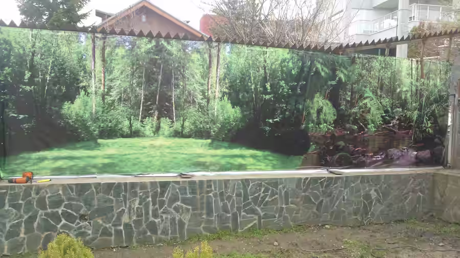 Виниловото платно не служи само за реклама. То може да бъде и ефектен декоративен елемент, който да преобрази вашия двор или градина.TEXT