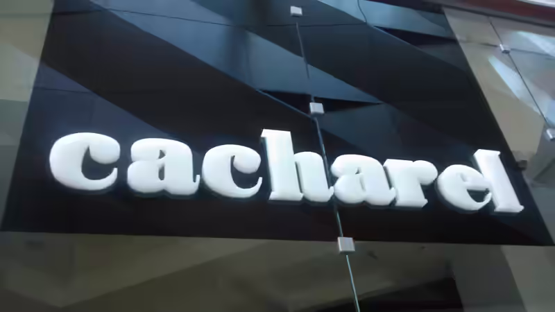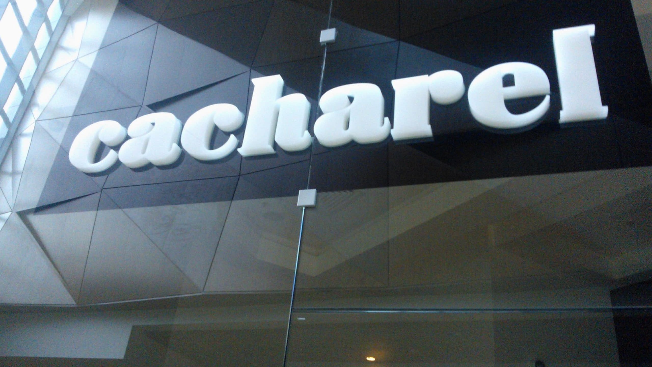 Създадохме този стилен надпис за модния бранд Cacharel, като заложихме на силния контраст между белите букви и тъмната основа.