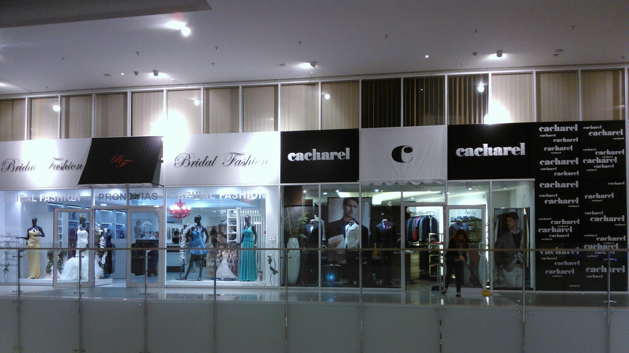 За магазин на марката КАШАРЕЛ, намиращ се в един от столичните МОЛ-ове, бе изработена реклама, изпълнена като рекламна кутия с обемни букви. Рекламата е изработена от композитен материал – еталбонд. Този композит е подходящ за рекламни табели не само за външна, но и за интериорна реклама. Продуктите от еталбонд са леки, луксозни и ефектни. Материалът е твърд и стабилен, водоустойчив и огнеупорен. Има невероятни граници на температурна издръжливост: от – 50 градуса до + 80 градуса. Това го прави много подходящ за изработка на всякакъв тип табели, а тъй като има отличен външен вид, бондът се използва за луксозно изглеждащи рекламни продукти. Когато е подходящо комбиниран с другите материали и креативен дизайн, могат да се получат впечатляващи табели на добра цена. Съобразявайки се с качествата и възможностите на еталбонда, за да се получи добър резултат на продукта, за обемни букви бе използван опалов плексиглас с дебелина 25 мм. Плексигласът е устойчив на UV лъчите, светоразпръскващ, а също така устойчив на различни промени на средата и химикали.Тъй като материалът е гъвкав, но и твърд, буквите се режат по контур с машина за рязане на твърди материали – рутер фреза, с необходимите габарити. Рутерът е машина, която се управлява чрез компютърно зададен файл, което осигурява изключителната прецизност на изработката. За кратко време с рутер могат да се изрежат разнообразни по сложност и големина форми, което пък прави обемните букви, изрязани с тази технология, бюджетен вариант. Рекламният продукт се отличава с изтънчен шрифт на логото на фирмата. Рекламната табела е в черен цвят, а буквите са бели, което създава търсения контраст на рекламния текст, който се отличава веднага и привлича вниманието към магазина за стилно облекло с утвърдена линия в света на модата.