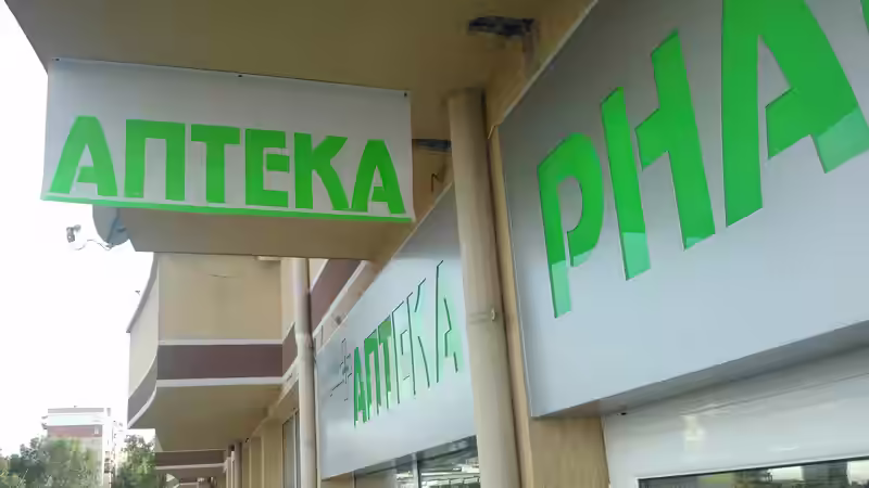 Обикновено при откриване на нов обект, неговият собственик прави цялостно брандиране, което включва различни видове реклами, избрани според рекламните му цели. Най-често това са комбинации от рекламни табели, или табели и фолиране на витрина, или табели и транспаранти. Възможностите са много и могат да отговорят на нуждите на всеки нов обект от сферите на търговията и услугите. За наш клиент беше изработена външна светеща реклама за аптека, която да информира и привлича клиенти с оглед денонощния режим на работа на обекта. Наред с табелата, беше изработен винилен флаг, или така наречения транспарант от винил, който бе поставен напречно на пътя с цел да информира потока от хора, преминаващи покрай обекта какво има на този адрес. Транспарантът е от винил и този избор се налага, когато рекламният продукт трябва да бъде изложен на външни атмосферни условия. Винилното пано не се влияе от слънце, дъжд или студ, обработва се лесно, монтажът и демонтажът са бързи и не оставят следи върху мястото, където е била изложена рекламата. Винилното пано е опънато върху метална рамка с помощта на крепежни елементи – дюбели. За по-добър ефект и визуална комуникация винилният флаг е монтиран на балкона над аптеката, като по този начин пряко информира клиентите за новооткрит обект – аптека, където могат да намерят лекарствени продукти живеещите в близост, както и преминаващите пътници. Целта на рекламният продукт -транспарант от винил, беше рекламното послание да се забелязва от далече. Затова текстът беше отрязан от самозалепващо флуоресцентно фолио. То се прави в електрикови цветове и се откроява ярко на всеки избран фон с дразнещия окото ефект. Флуоресцентното плотерно фолио е за рекламни и информационни цели с повишена дневна видимост. Комбинацията му с винилно платно осигурява продукт с ниска себестойност и затова е много предпочитан начин за изработка на външна реклама, пред която стои изискване да се открои в потока от информационни източници.