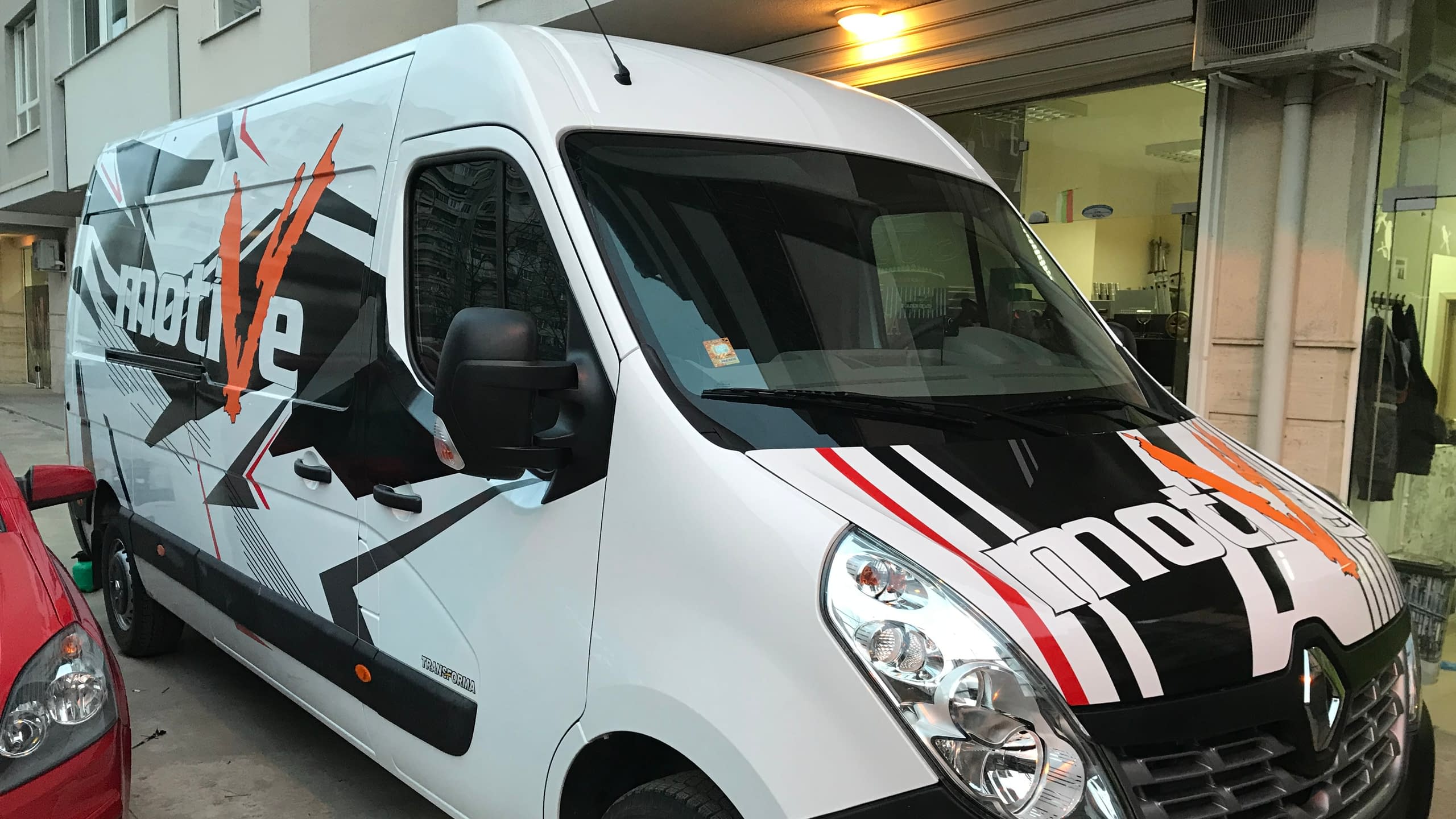 Превърнете служебния автомобил в движеща се реклама! Ето един пример за атрактивно и модерно брандиране на бус, което гарантирано привлича погледите на пътя.