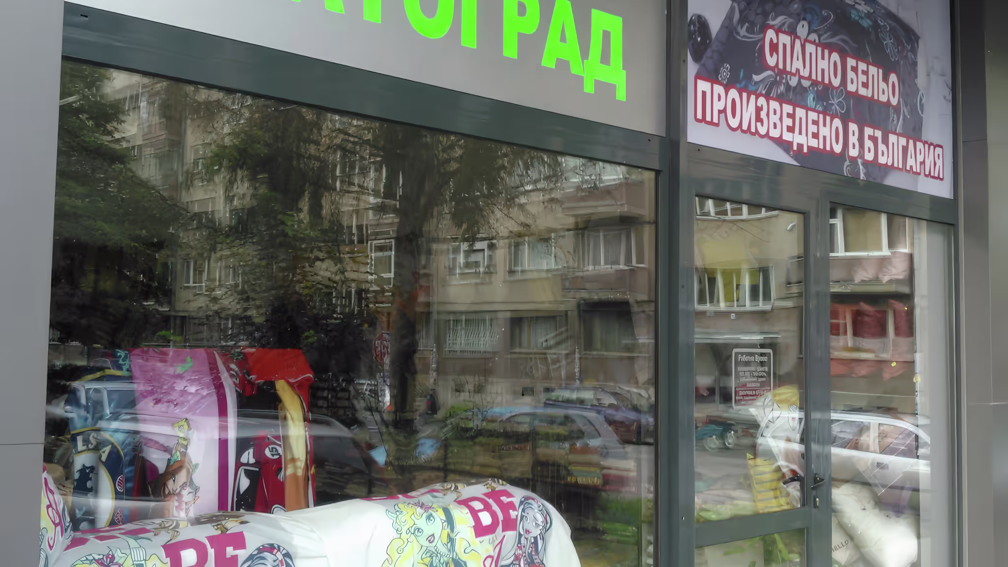 Стъклените витрини на магазините са идеалната рекламна площ поради своята гладкост, добра площ и позиция на фасадата на сградата, което я прави максимално забележима. Рекламата с фолио върху витрина предлага многообразие от възможни решения – фолиране с различни видове фолиа и добавяне на лога, надписи, изображения, фирмени знаци в огромно цветово разнообразие. С това възможностите за реклама не се изчерпват. Търсенето на креативни решения води до съчетаване на различни варианти на реклама, както е направено в магазин за продажба на спално бельо. От лявата страна на витрината е поставена реклама с рязано фолио. Като основа е използвано сребърно фолио металик, върху което е апликиран надпис с флуоресцентно фолио в зелен цвят. Сребърното фолио металик дава неутрална основа, върху която да се положи флуоресцентният надпис. Флуоресцентното фолио е гъвкаво, в електрикови цветове, с което се откроява ярко на всеки избран фон. То е добър вариант за рекламиране на фирма, с която имате търговски взаимоотношения. Магазинът, който продава спалното бельо, производство на БЕЛОТЕКС, рекламира фирмата, чиято продукция продава, и по такъв начин прави реклама и на собствената си дейност. В дясната част стои надпис върху изображение на спалня, застлана с предлагания артикул. Рекламата е изпълнена с печатано фолио с ламинат и е рекламна стратегия, насочена изцяло към собствената дейност. Техниката печат върху фолио е с широко приложение, тъй като дава възможност за постигане на фотографско качество на изображението с максимално ярки и наситени цветове при висока резолюция на печатане. Освен добро качество тази техника осигурява и дълготраен живот на изображението, особено при ламиниране. За рекламата на дейността на магазина са избрани цветове, които са в съвсем различна гама, както и надписа върху изображението. Така зрително се отделят двете реклами и остава достатъчно силно впечатление както за търговския партньор, така и за самия обект. Добре обмислената рекламна стратегия позволява рекламиране на различни фирми или дейности на една рекламна площ, като рекламите не си пречат, а се допълват.