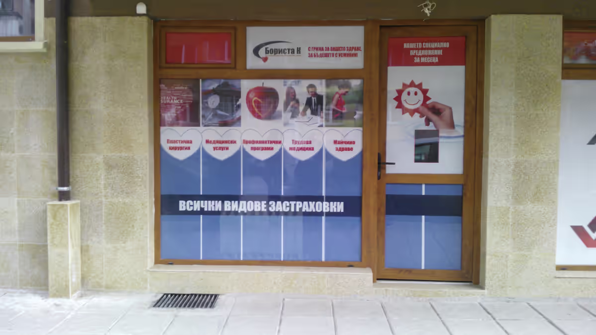 За наш клиент бе изработена и монтирана реклама със самозалепващо перфо фолио за витрината на офис за медицински услуги. Проектът бе по задание на клиента и съобразен с изискванията на разпоредбите за този вид дейност. Рекламната площ е фолирана цялостно с перфо фолио, за да се постигне ефектът на пропускане на слънчева светлина в работното помещение и в същото време да не се вижда отвън какво се случва в офиса. Целта е да се запази дискретността на работното пространство и да се създаде комфорт на служителите. Перфо фолиото има тази способност – то осигурява перфектна видимост отвътре навън, но ограничава видимостта отвън навътре и по тази причина е на първо място в предпочитанията и поръчките за брандиране на фирмени помещения. Цялостното фолиране на витрина дава възможност за изключително богато разнообразие от възможности за реклама. С печат върху перфо фолио може да се създаде впечатляващ дизайн на витрината. С широкоформатен дигитален печат се създава изображение с висока наситеност на цветовете, а с използване на екосолвентни мастила с UV защита се постига дълготрайност на създаденото изображение.Ефектните дизайни, които се създават, правят помещението да бъде с уникален вид. Перфо фолиото има способността да се слива перфектно с фасадата на сградата, което веднага превръща рекламата в имиджова и ефектна за дълъг период от време. С перфо фолио може да се брандира и частично. Тази опция е по-популярна в интериора, най-вече в конферентни зали, върху стъклата на общи служебни помещения. При витрините се избира, когато част от рекламната площ трябва да остане свободна, за мостри или някакъв образец на фирмената дейност. Избор на реклама чрез фолиране с перфо фолио е евтин и ефектен начин да използвате свободната площ на витрината за много цели.